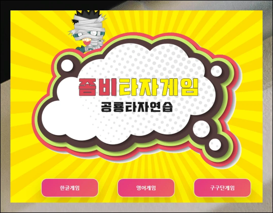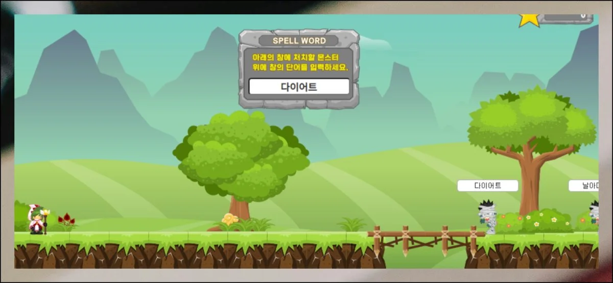 공룡 서비스에는 재미있게 실력을 키울 기능이 있습니다. 바로 게임하기 메뉴예요. 몬스터와 함께 다가오는 단어를 입력하는 방식입니다.
