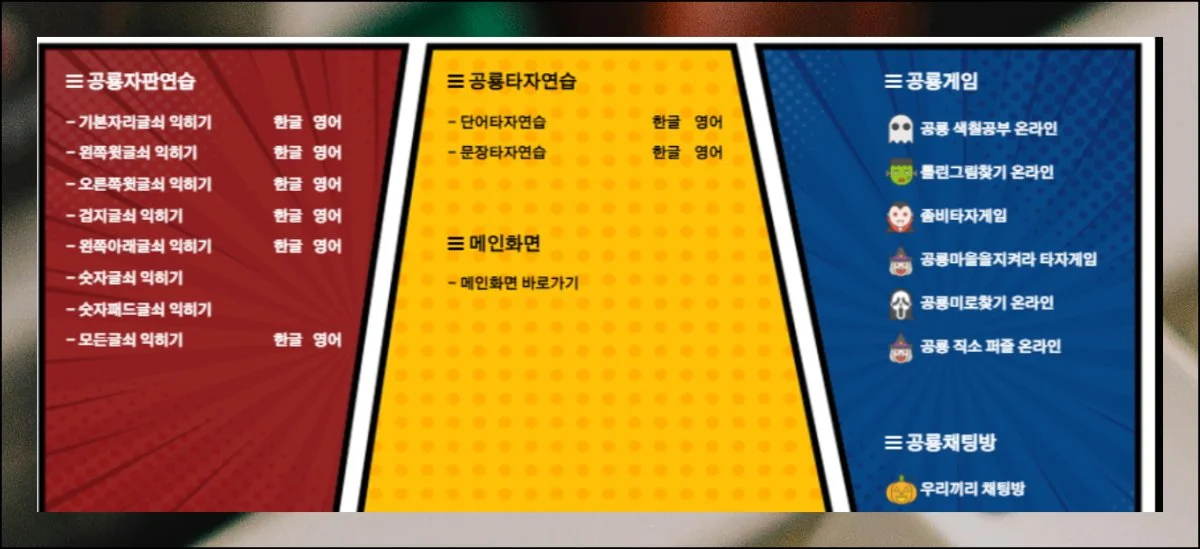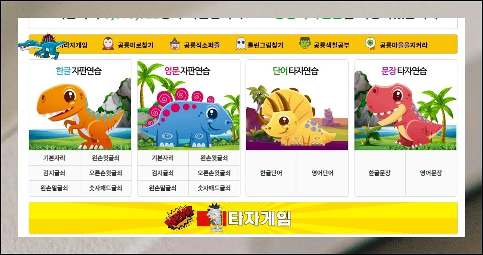 타자 실력을 키우고 싶을 때 추천하는 공룡 사이트가 있습니다. 접속 후 원하는 기능만 선택하면 곧바로 학습을 시작할 수 있어요.