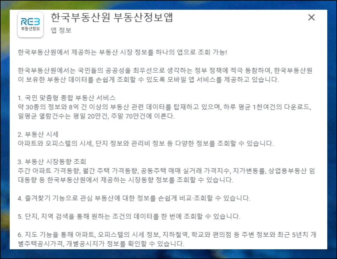 한국감정원이 제공하는 모바일 애플리케이션을 사용하면 더욱 간편하게 부동산 자료에 접근할 수 있어요. 앱을 통해 공시지가는 물론 시장의 최신 동향까지 파악할 수 있습니다.