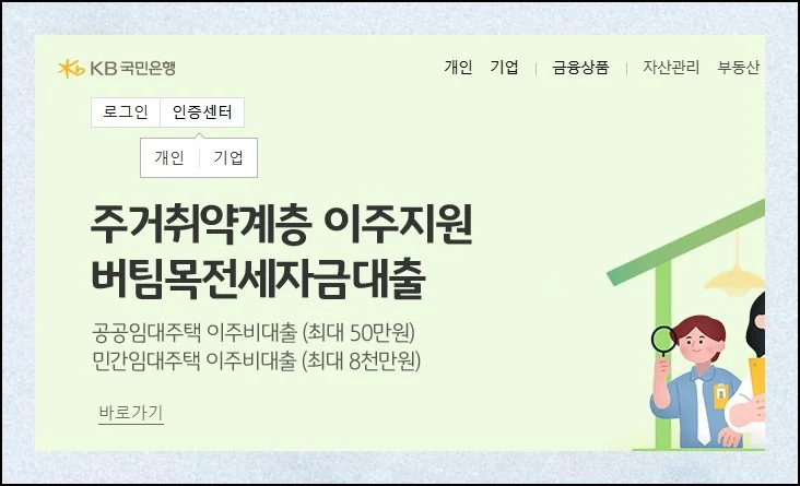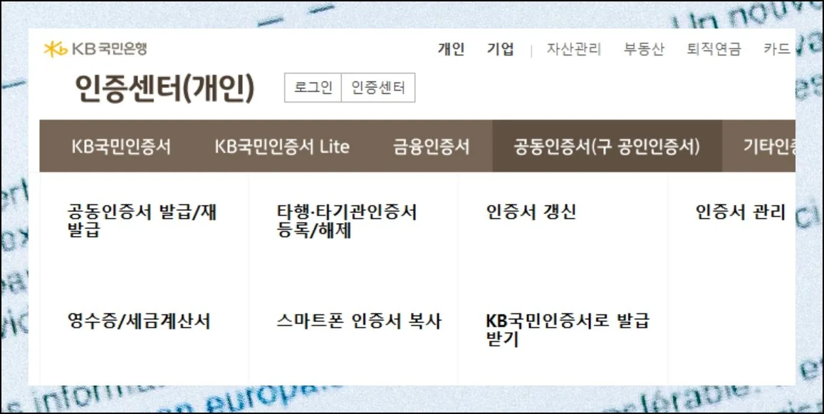 은행 웹사이트에 로그인한 뒤 인증센터 메뉴를 찾아 클릭하세요.