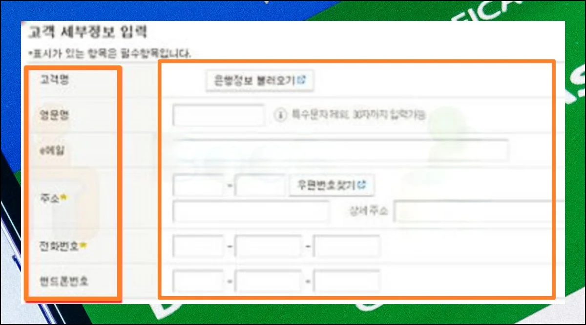 영문 이름을 적는 칸이 있는데 필수 항목은 아니에요. 하지만 주소와 전화번호는 반드시 정확하게 기입해야 합니다.
