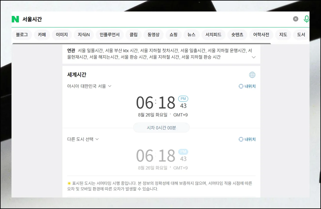 네이버에서는 전 세계 주요 도시들의 현재 시간을 실시간으로 확인할 수 있는 서비스도 제공합니다.