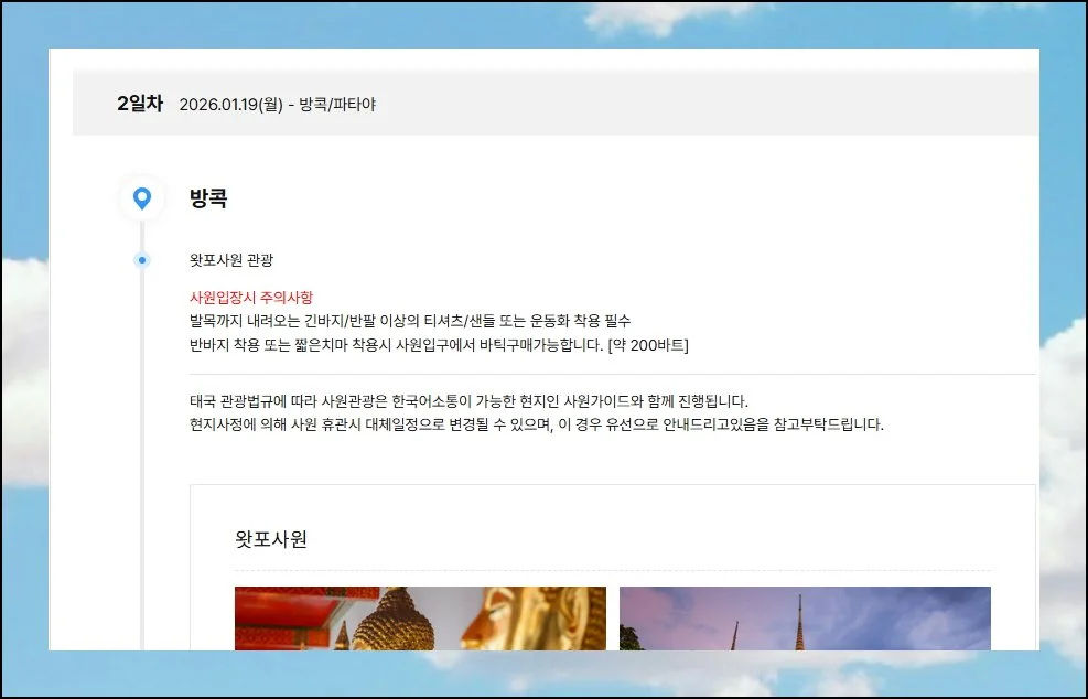 관광지 안내와 선택관광 설명도 함께 제공돼요.