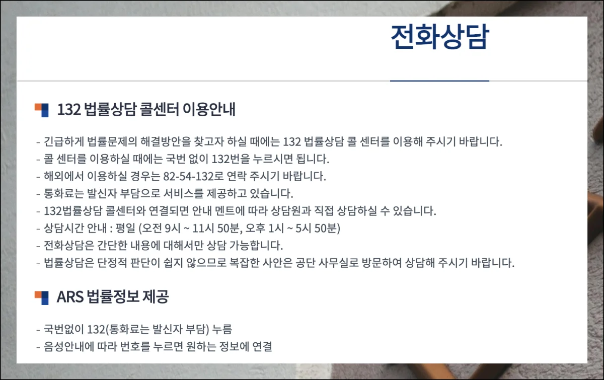 전화 상담은 간단한 문의에만 적합해요. 내용이 복잡하다면 대구 법률상담센터를 직접 방문하는 것이 좋습니다.