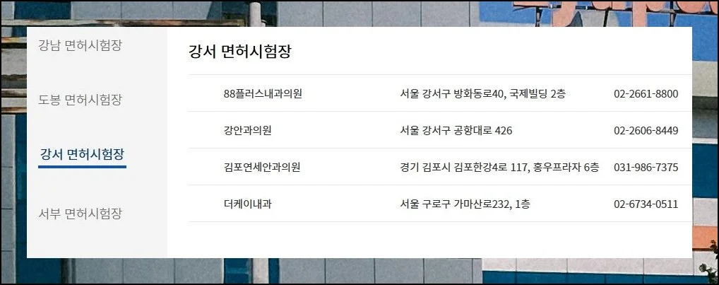 도로교통공단 시험장 내부에서도 진행이 가능하지만 사람이 몰려 오래 기다리는 경우가 많아요. 이런 이유로 외부 지정병원을 별도로 방문하는 분들이 적지 않습니다.