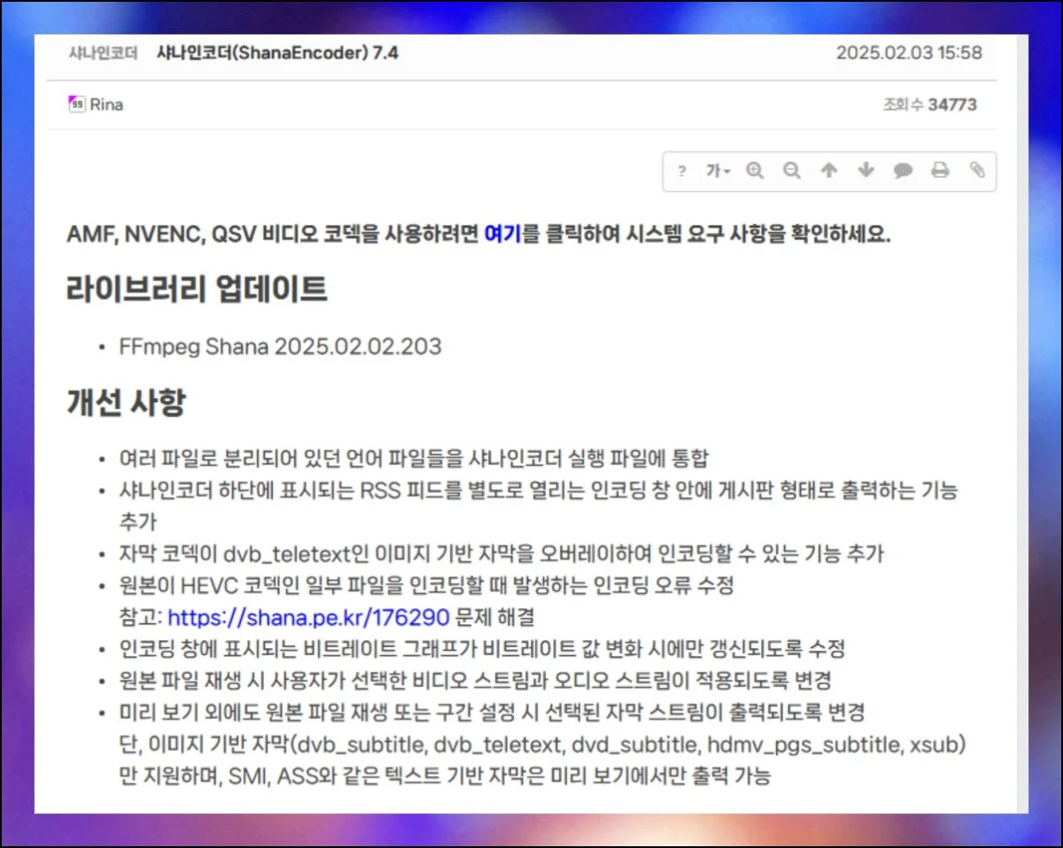 샤나인코더 공식 페이지를 방문하면 설치 파일을 간편하게 구할 수 있어요. 만약 특별한 영상 코덱을 활용할 계획이시라면 시스템 사양을 먼저 확인하시길 바랍니다.