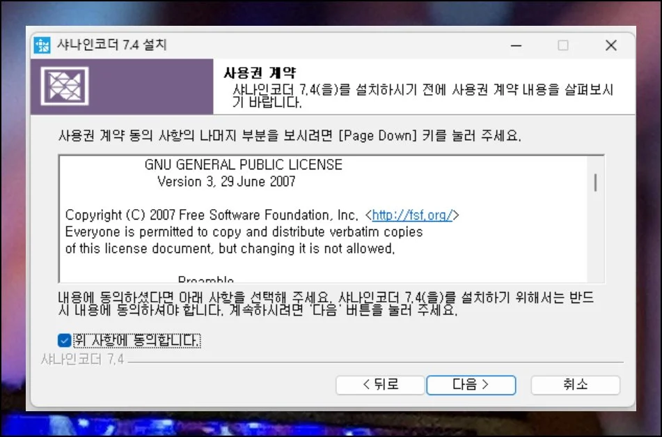 프로그램을 설치하는 건 다음과 설치 버튼만 누르면 완료돼요. 구성 요소를 고르는 화면에서 프리셋 파일 복사 항목을 꼭 선택하세요.