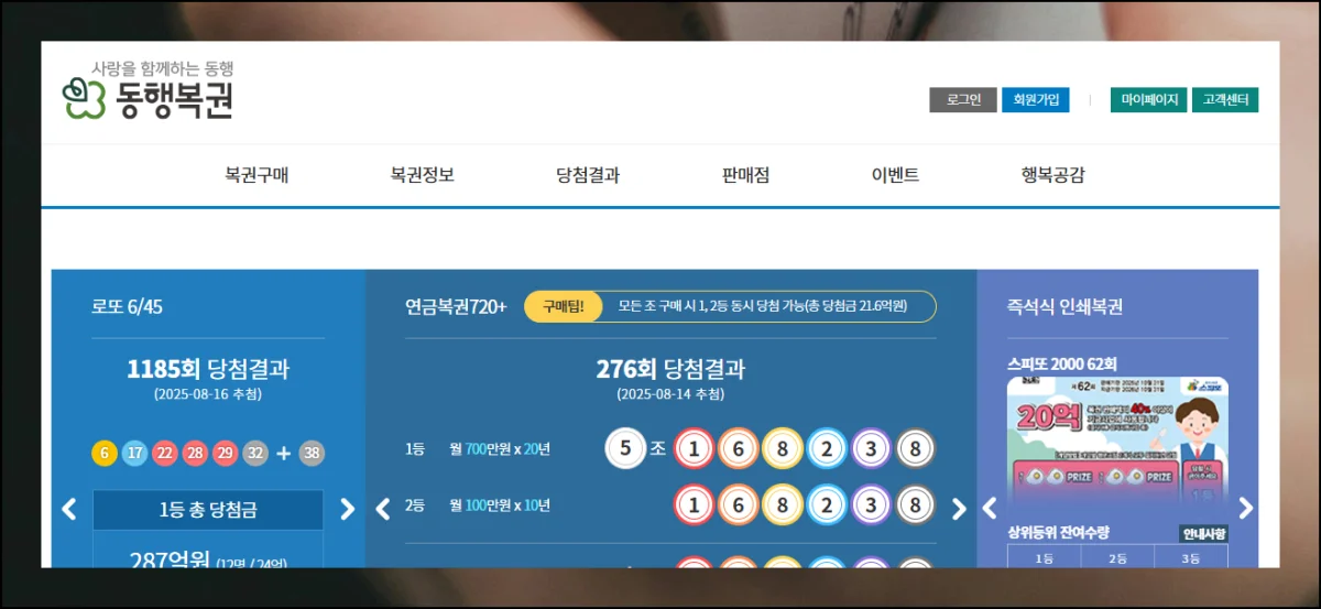 동행복권의 인터넷 서비스를 통해 간편하고 안전하게 로또를 즐길 수 있습니다.
