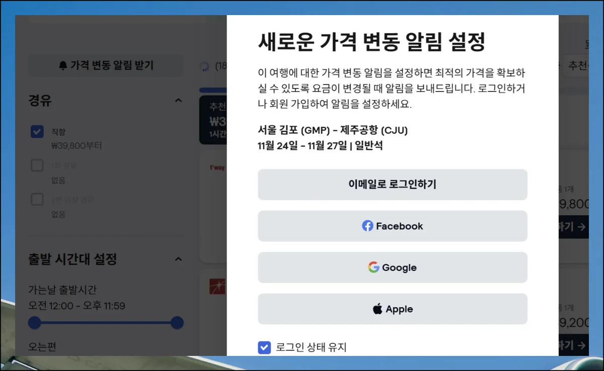 예약을 희망하는 가격대의 항공권이 없다고 포기할 필요 없어요. 요금 변동 알림 기능을 설정해두면 해결되거든요.