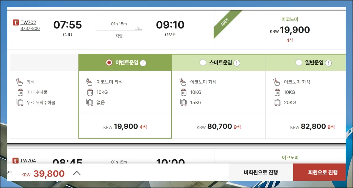 땡처리 항공권 예약 특가진행 방법