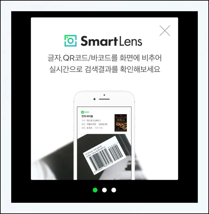 스캔 기능을 갖춘 스마트렌즈가 나오지 않는다면 네이버 앱이 없어서 그럴 가능성이 있어요. 구글 플레이스토어나 앱스토어에서 ‘네이버’ 앱을 찾아서 설치해보세요.