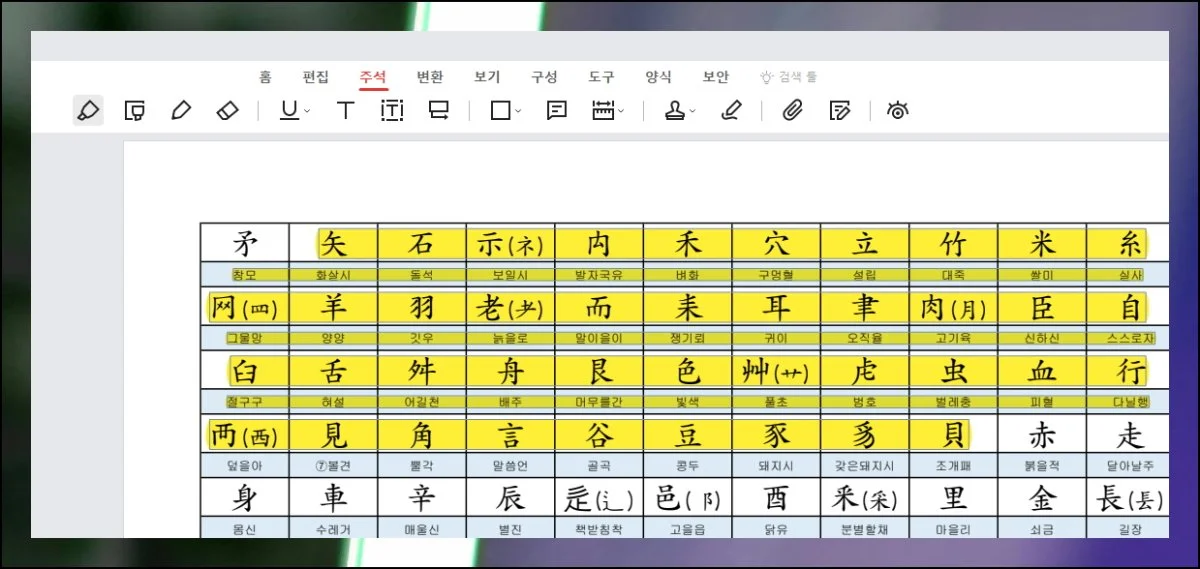 메뉴에서 검토 버튼을 선택해보세요. 하이라이트 표시, 도형 그리기, 댓글 달기 등 문서에 의견을 남길 수 있는 기능들을 무료로 사용 가능해요.