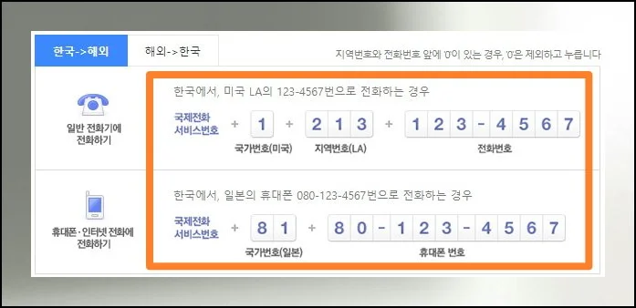 (3) 해외에서 한국 전화하기