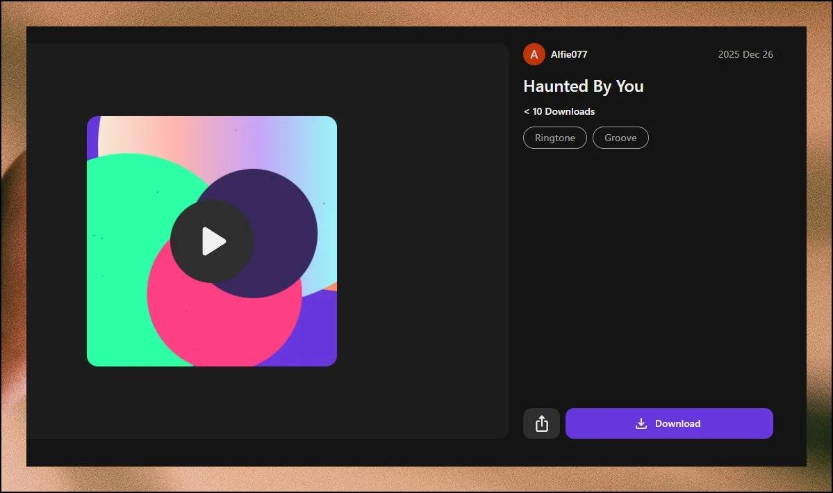 원하는 전화 멜로디의 제목을 클릭하면 내장 플레이어가 자동으로 실행돼요. 마음에 드는 추천 음원을 발견했다면 DOWNLOAD 버튼을 눌러서 MP3 파일로 저장하세요.