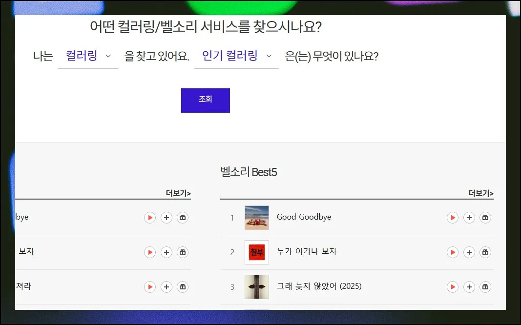 최근 유행을 반영한 다양한 벨소리 음원을 손쉽게 추천받을 수 있다는 장점도 있어요.
