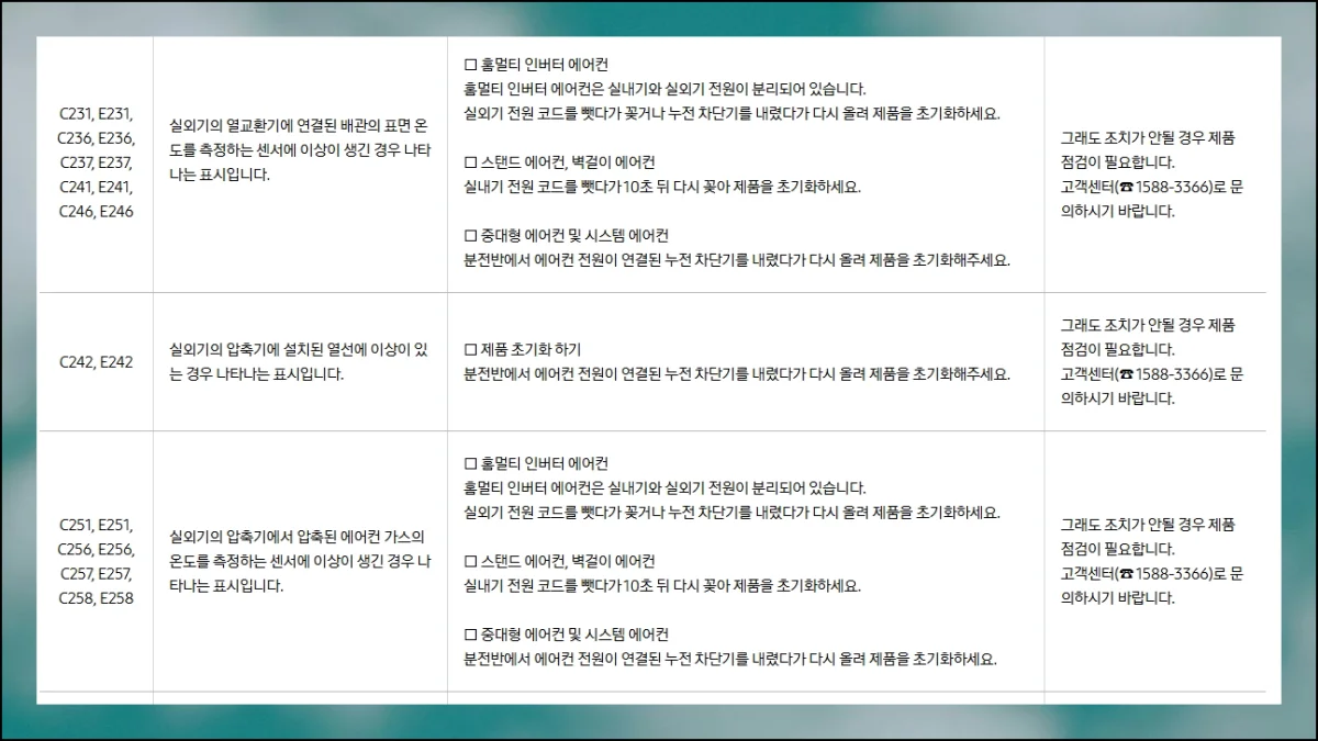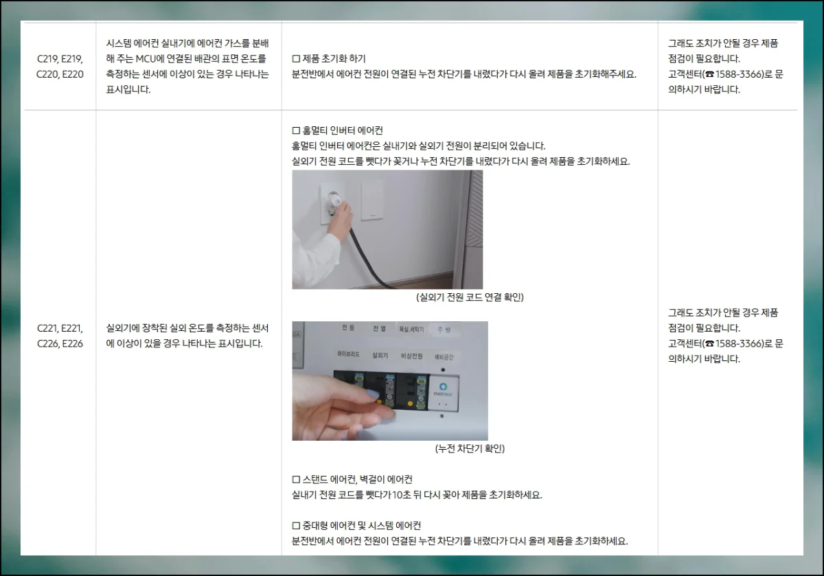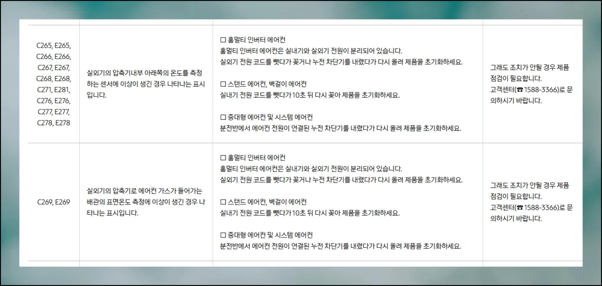여름철 냉방기 사용량이 늘어나면서 각종 오류 표시로 고민하시는 분들이 많아지고 있습니다.