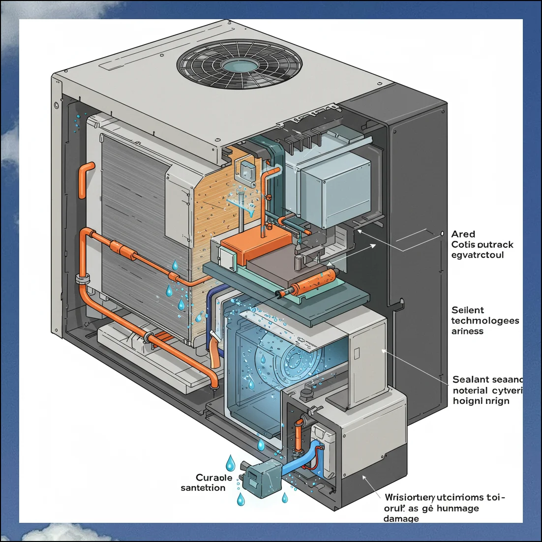 습기에 장시간 노출된 장비 내부는 열교환기의 금속 부분에 부식이 생기거나 송풍팬 같은 주요 부품들의 성능이 저하될 위험이 높아집니다.