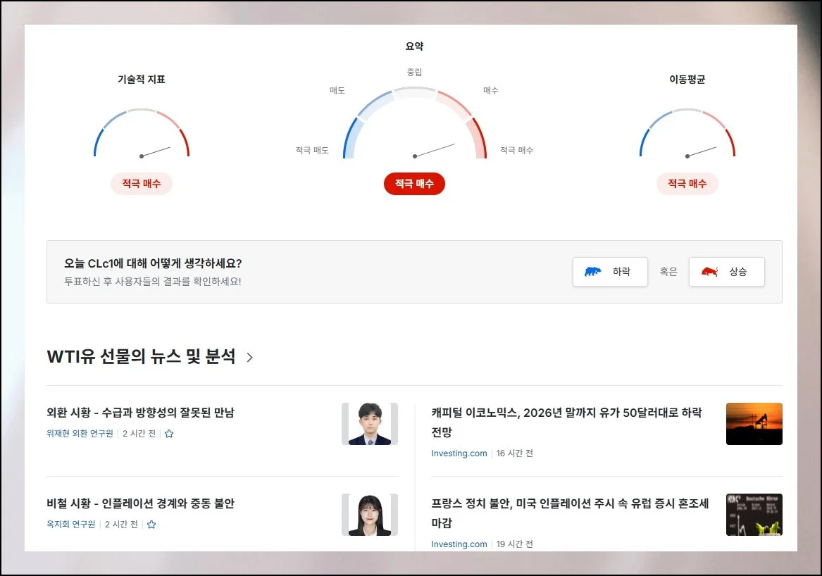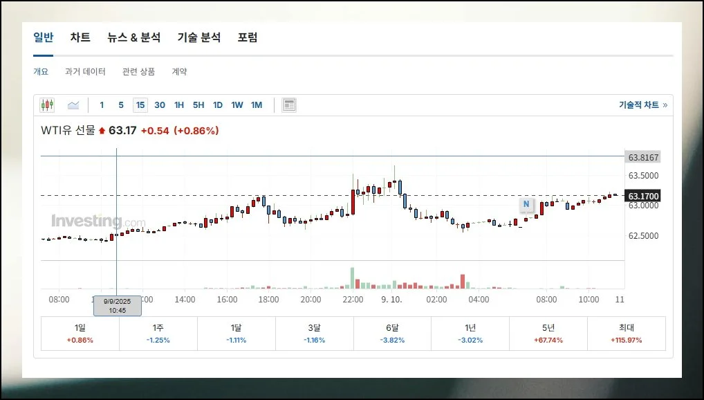 메뉴 선택을 통해 원유 전용 페이지에서는 국제 유가의 전체적인 흐름을 파악할 수 있어요.