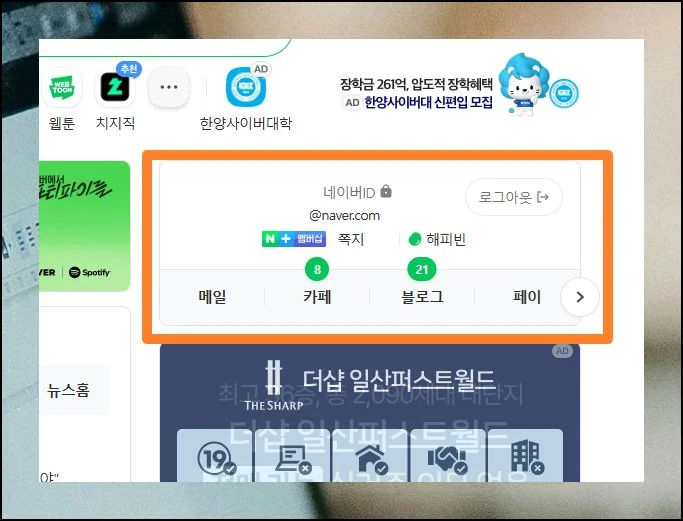 네이버 계정을 갖고 계신 분들은 홈페이지에서 로그인 절차를 먼저 거치세요. 로그인 후 상단 메뉴를 클릭하시면 서비스로 들어갈 수 있어요.