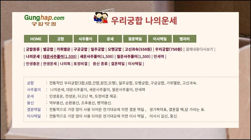 궁합 분석, 사주 해석, 운세 조회 등 폭넓은 역학 콘텐츠를 운영하는 곳입니다. 순서대로 따라하면 누구나 무리 없이 이용 가능해요.