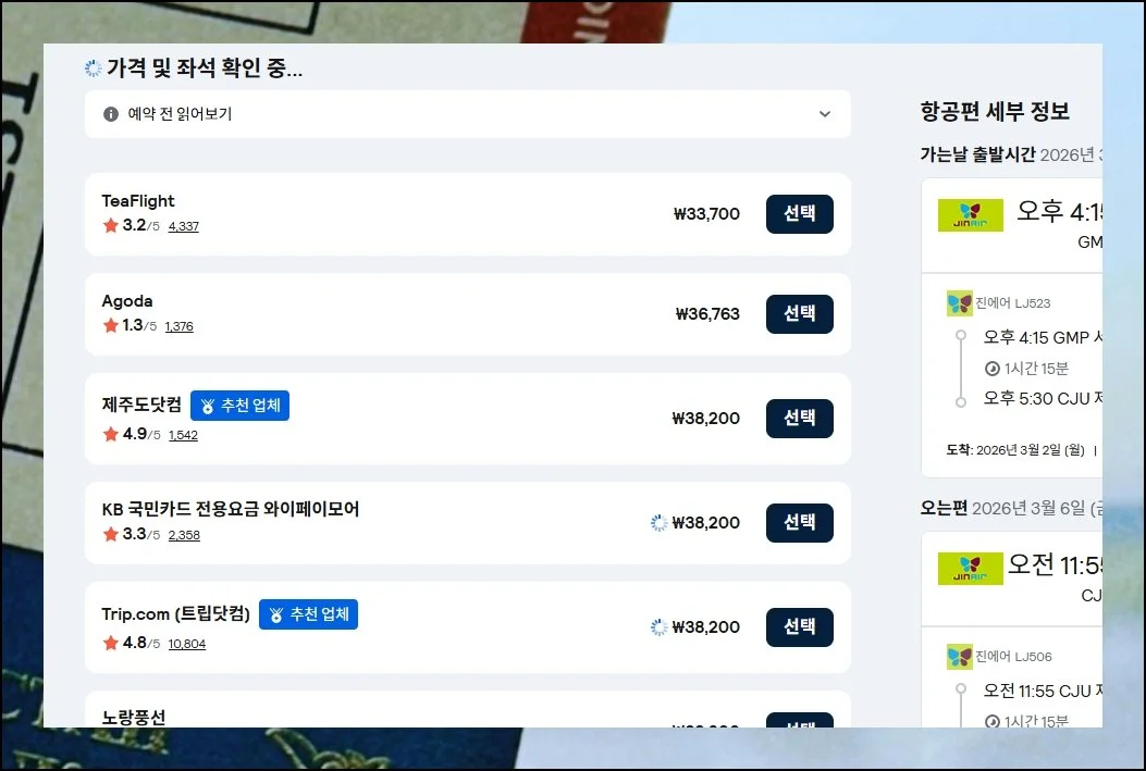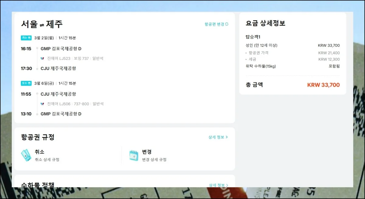 괜찮은 제주항공권을 하나 잡아두셨나요. 이제 실제 구매를 진행하는 단계로 넘어갈 때에요.