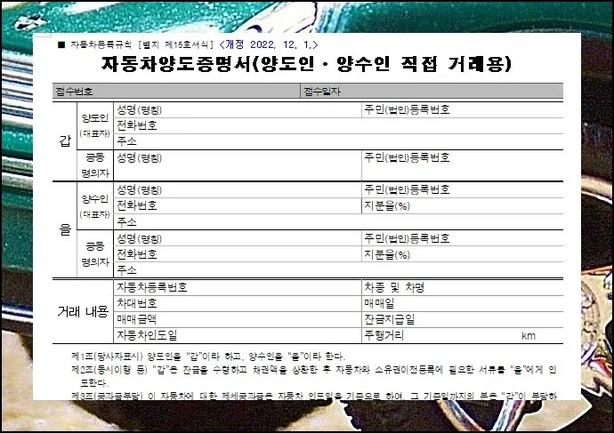 #차량매매계약서 #양도증명서 #자동차민원포털 #한글뷰어 #개인간차량거래
