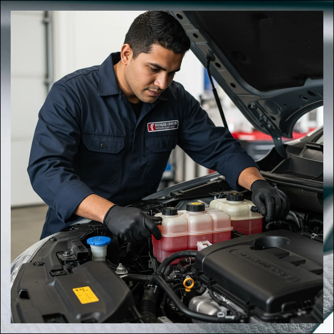 냉각수 보관함을 열어서 적정량이 들어있는지 점검해보시고, 부족하다면 즉시 보충해주세요.