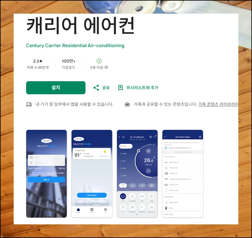 최신 캐리어 제품들은 와이파이 연결 기능을 지원해서 스마트폰으로 조작이 가능합니다. wi-fi ready나 smarthome 스티커가 붙어있는 모델이라면 캐리어 스마트 홈 앱을 다운받아 연결할 수 있어요.