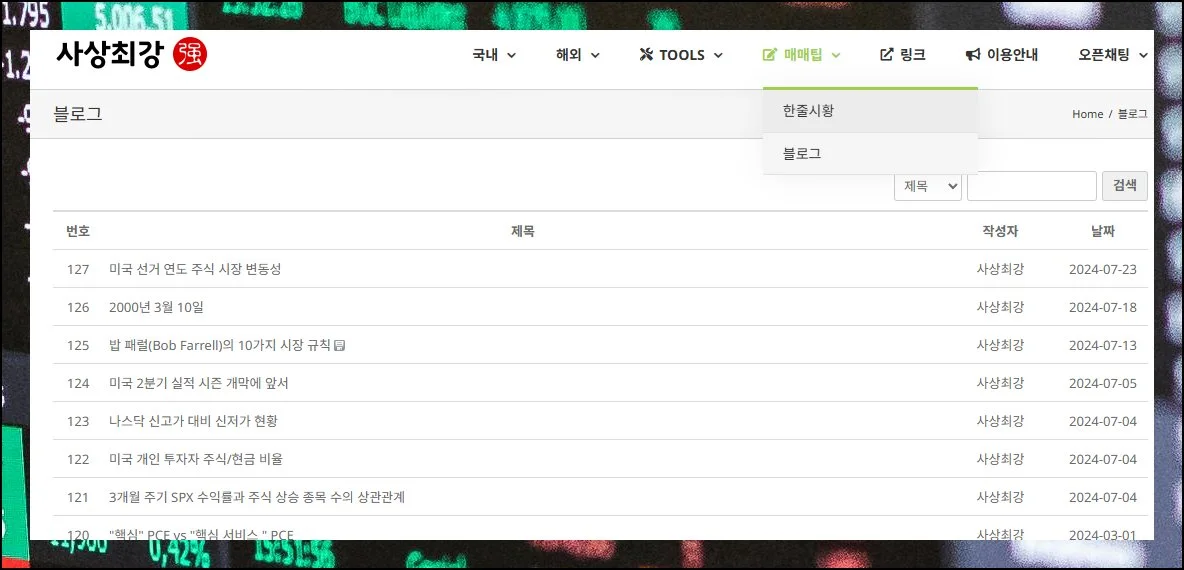 사상최강 사이트에는 이따금씩 매매 전략 글이나 시황 해설 자료가 업로드됩니다. 내용의 완성도가 꽤 높은 수준이에요.