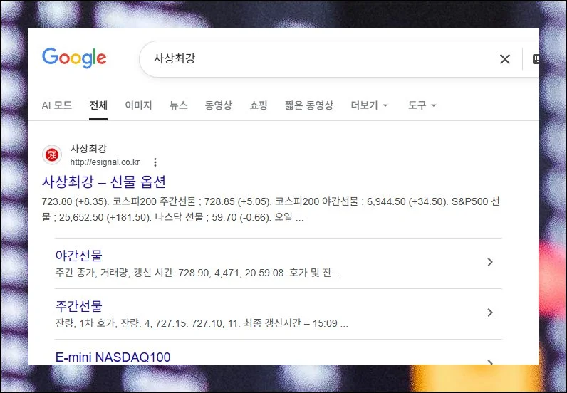 인터넷 연결만 되어 있으면 코스피 야간선물지수를 즉시 확인할 수 있습니다. “사상최강”이라는 사이트에 들어가면 돼요.