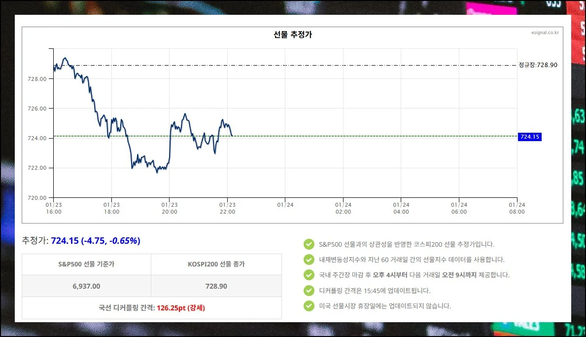 주식 투자를 하다 보면 장이 마감된 후에도 시장 흐름이 궁금해질 때가 많습니다. 특히 ETF나 선물 투자자라면 다음 날 개장가를 미리 예측하고 싶은 마음이 크죠.