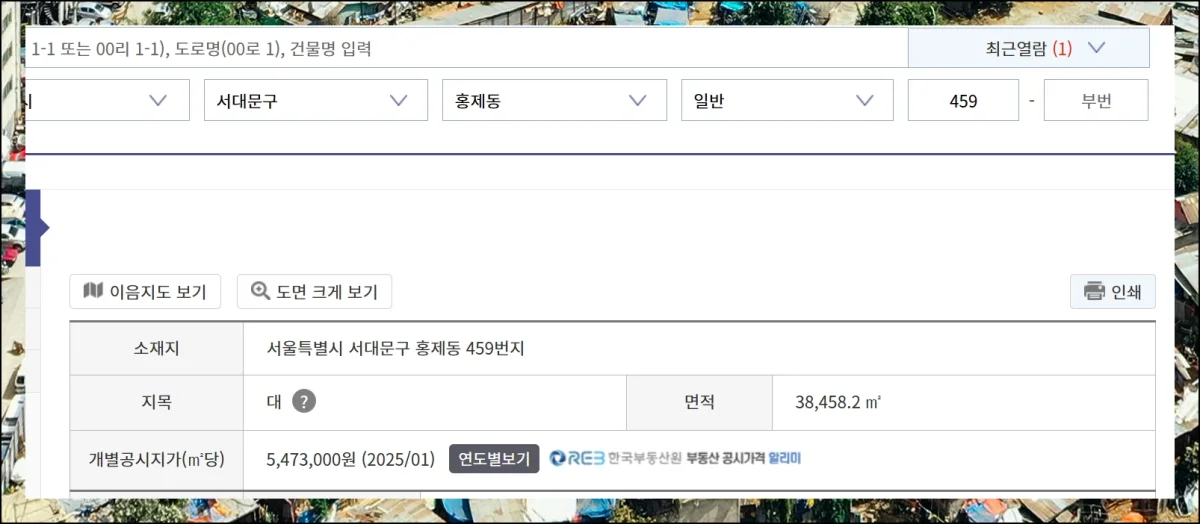 로그인 절차 없이도 토지 관련 정보를 무료열람을 진행할 수 있습니다. 위치, 용도, 면적, 공시지가 등 핵심 데이터들이 한 번에 표시되어요.