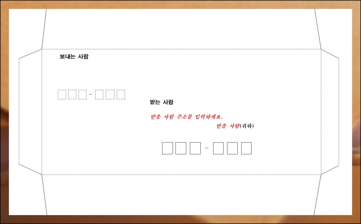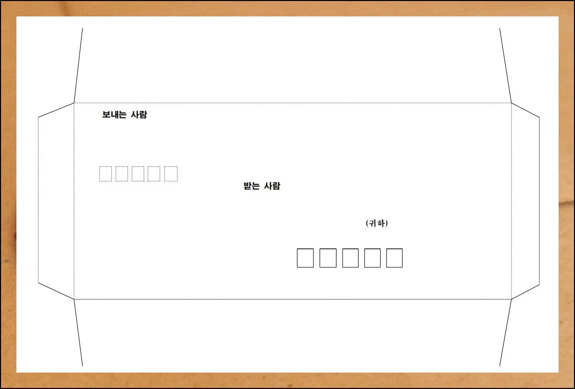 그래서 누구나 쓸 수 있도록 표준 규격 편지봉투 도안을 미리 만들어뒀어요. 파일을 받아서 바로 출력하면 되니까 부담 없이 활용해보세요.