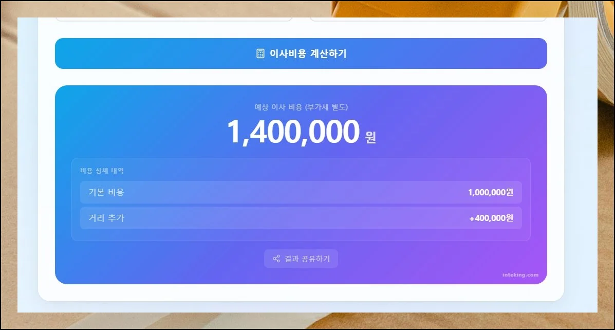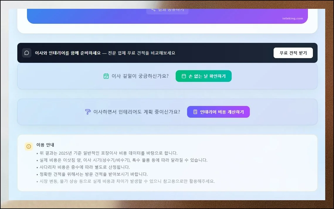 #포장이사비용 #이사비용계산기 #포장이사견적 #인테킹 #이사준비