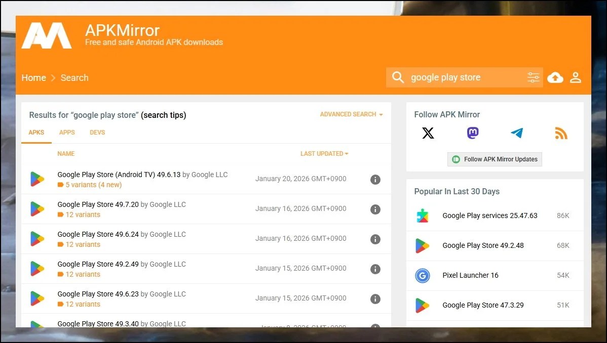 APKMIRROR 웹사이트를 방문해보세요. 이곳에서 안전하게 필요한 자료를 구할 수 있습니다.