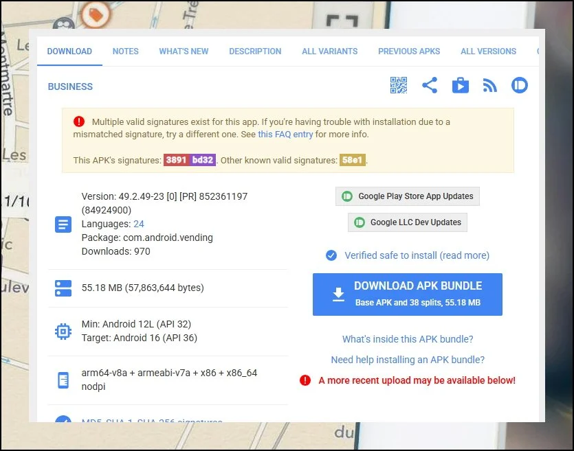 APK 파일을 이용해 플레이 스토어 앱 다운로드를 직접 진행하는 방법이 있습니다. APKMIRROR 사이트를 통해 안전하게 앱 파일을 다운로드 받아 수동으로 설치할 수 있어요.