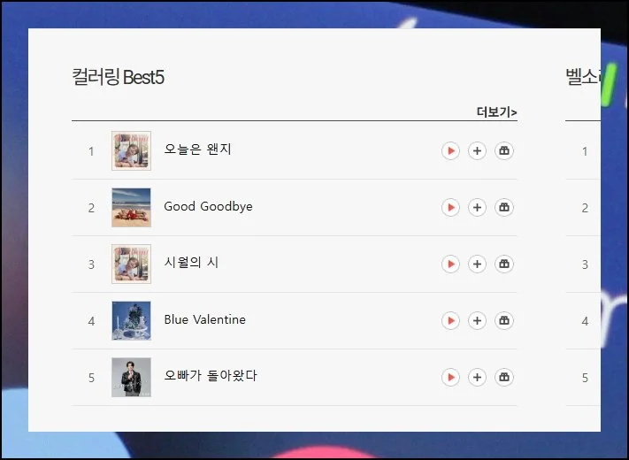베스트 5 목록 하단에 보이는 더보기 버튼을 눌러주시면 됩니다.