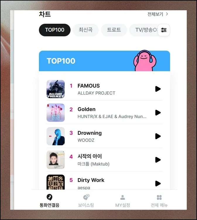LG 유플러스가 확보한 곡 목록은 상당히 방대해요. 신곡과 화제곡뿐 아니라 장르 구분도 촘촘하게 되어 있습니다.
