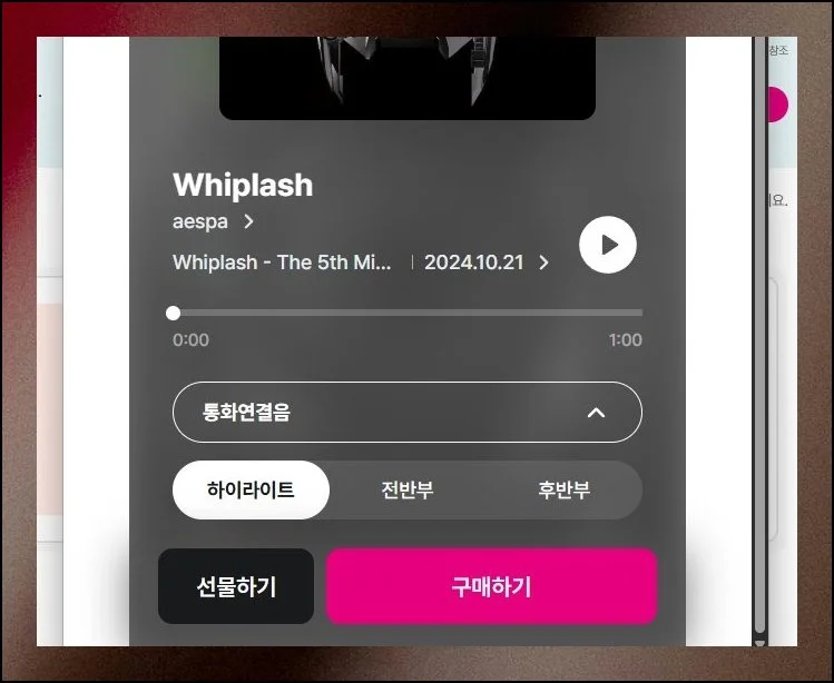 듣기 아이콘을 탭하면 해당 곡을 먼저 재생해 볼 수 있어요. 이용 요금도 동시에 표시됩니다.