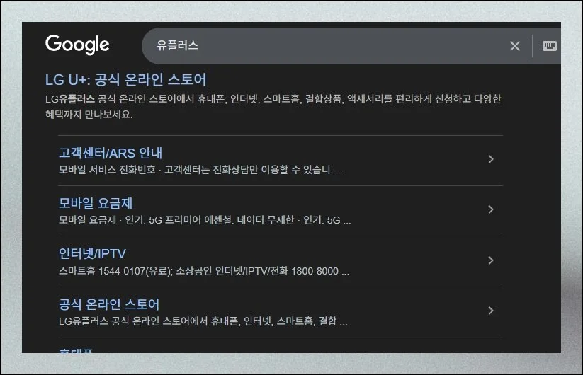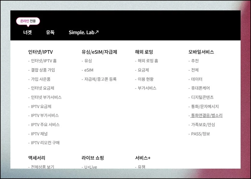 LG 유플러스 회선 사용자는 엘지유플러스 대표 웹사이트를 방문하면 돼요. 다른 통신사와 동일하게 전용 메뉴가 따로 갖춰졌습니다.