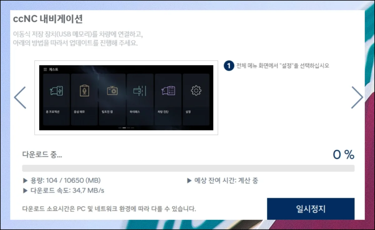 몇 번의 클릭만으로 모든 설치를 완료할 습니다. 간단한 방법을 통해 누구나 업그레이드를 할 수 있도록 현대자동차에서 대비를 다 해놓았거든요.