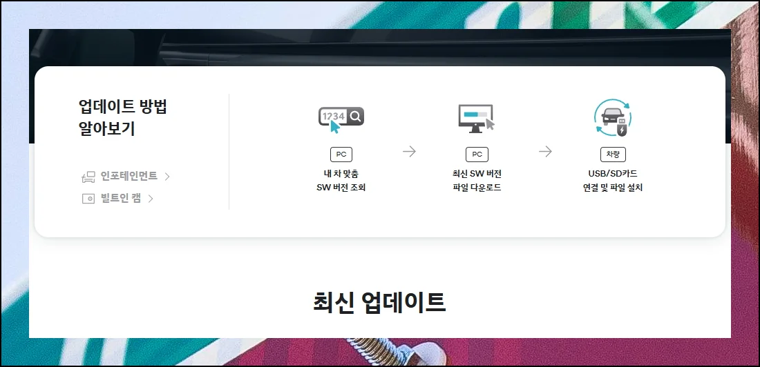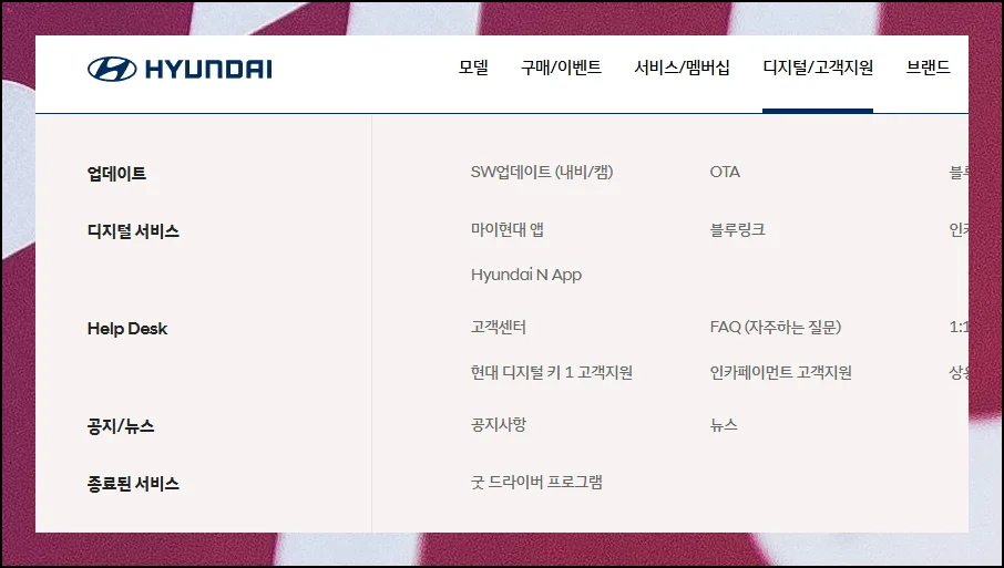 현대자동차 공식 웹사이트 메인 페이지에서 고객지원 섹션을 클릭해 보세요. 그곳에서 내비게이션 시스템을 개선할 수 있는 전용 서비스 메뉴를 발견할 수 있어요.