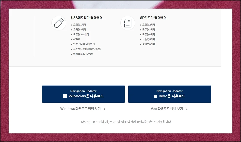 차량 내비게이션을 최신 상태로 만들려면 현대자동차 공식 사이트에서 제공하는 전용 업그레이드 프로그램과 데이터 저장용 SD카드만 있으면 됩니다. 필수적으로 필요한 것이니 꼭 챙겨주세요.