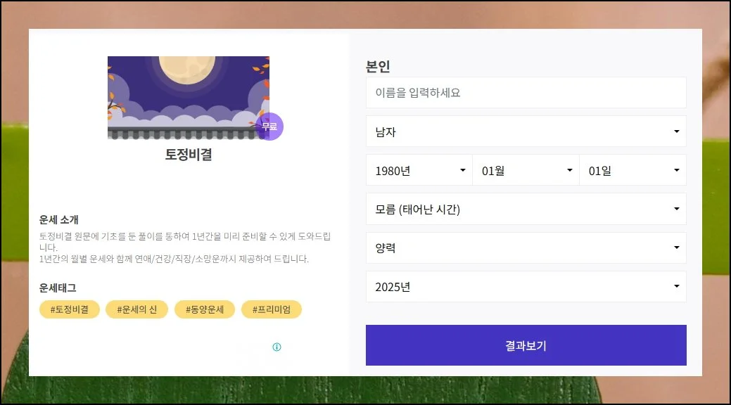 25년 무료 토정비결 서비스 총정리, 2025년 미리보기 가능