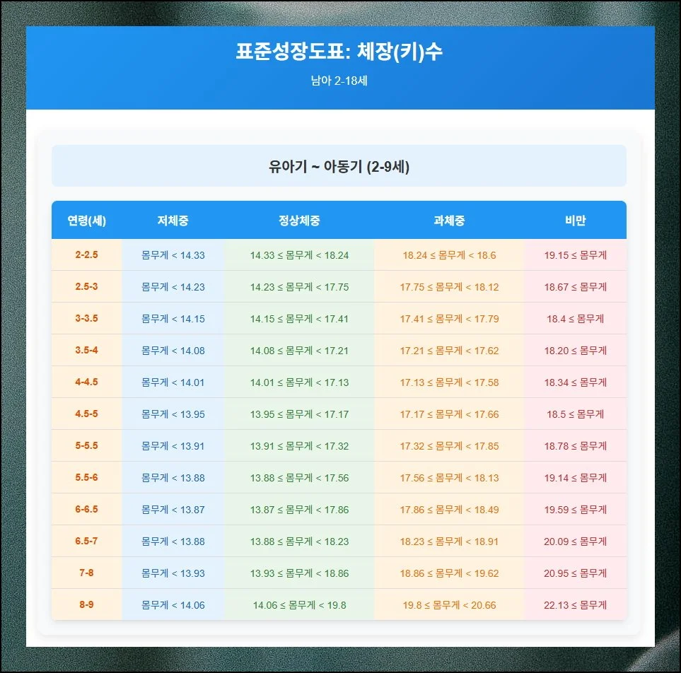 체질량지수를 제대로 활용하려면 표준성장도표부터 확인해야 합니다.