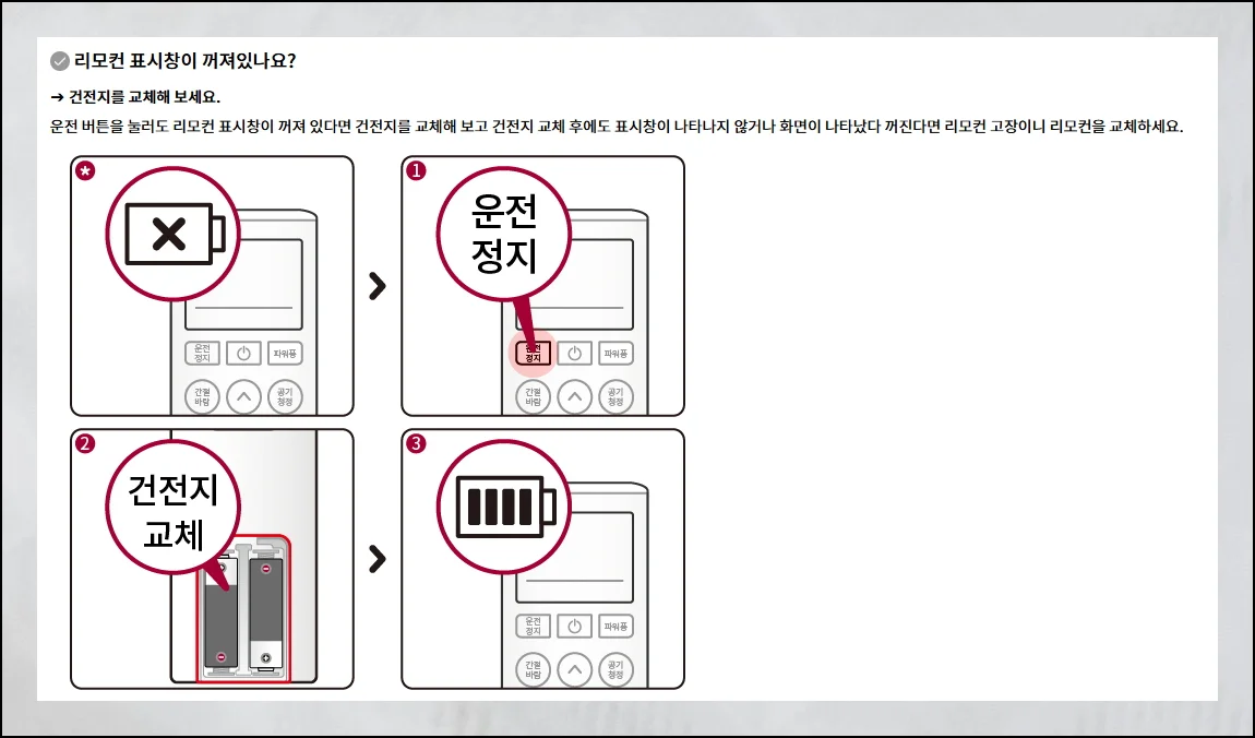 LG 휘센 에어컨 리모컨 먹통 상황별 대처 가이드